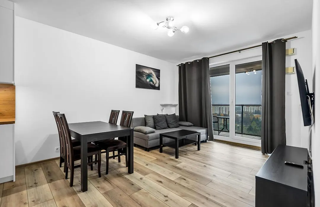 View Of The City Skyline Apartment Warszawa o powierzchni 50 m² leży maksymalnie 6 min piechotą od Kościoła Świętych Apostołów Jana i Pawła w Warszawie i 15 km od lotniska Chopina.